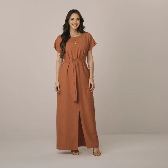 Vestido Sasha Em Viscolinho Marrom Tata Martello