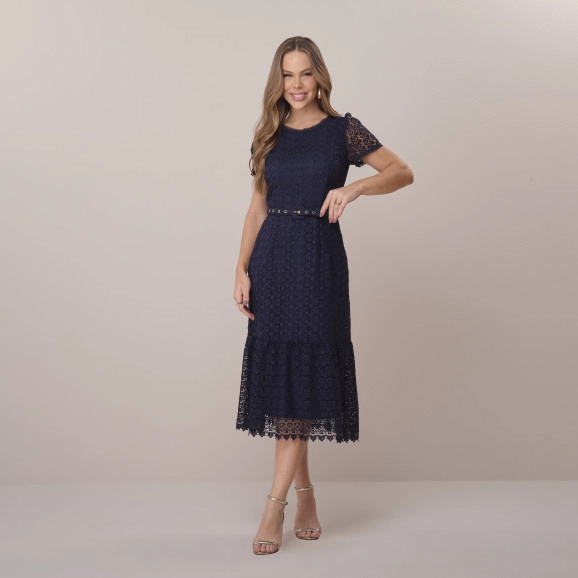 VESTIDO 6514 SUELEN - TECIDO: GUIPPIR COM CINTO - PP AO GG