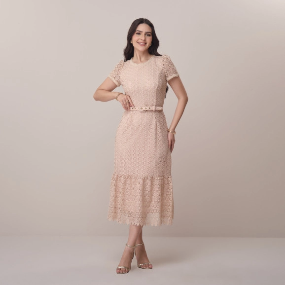 VESTIDO 6514 SUELEN - TECIDO: GUIPPIR COM CINTO - PP AO GG