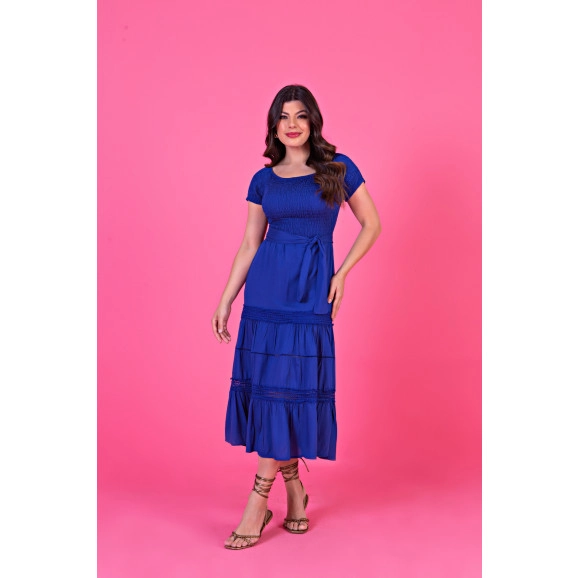 Vestido Super Midi de Viscose Lisa Com Lastex Nas Mangas E Busto Hadaza