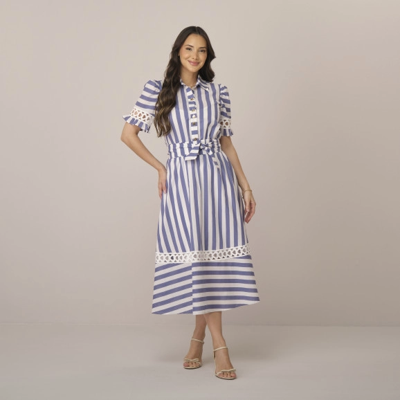 VESTIDO 6558 TAMIRES - TECIDO: ALGODÃO SANTORINI COM RENDA (FORRADO) - PP AO GG