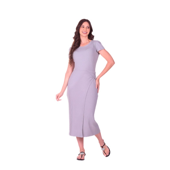Vestido Tatiana Em Malha Canelada Cinza Hapuk