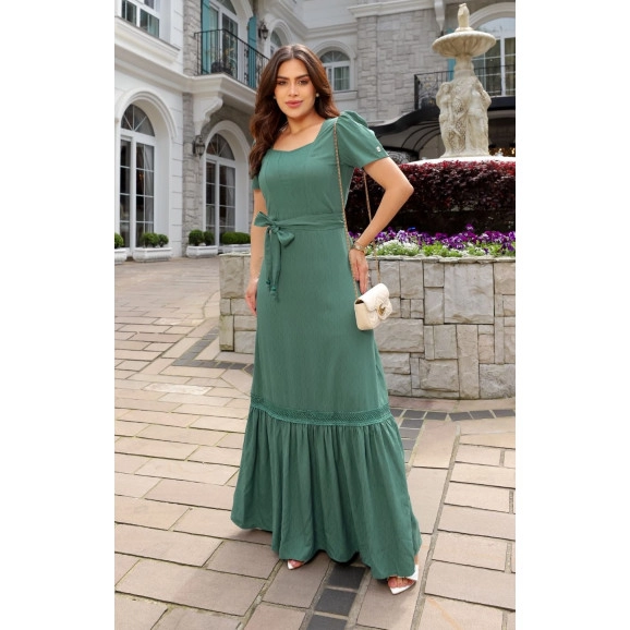 Vestido Tayla Em Viscose Maquinetada Verde Maria Amore
