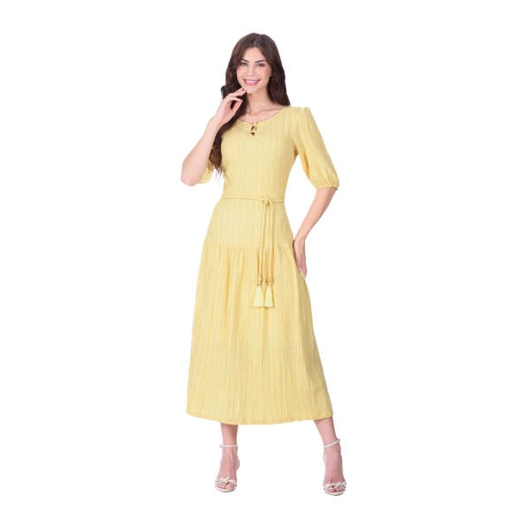 Vestido Thaisa Em Malha Texturizada Amarelo Hapuk