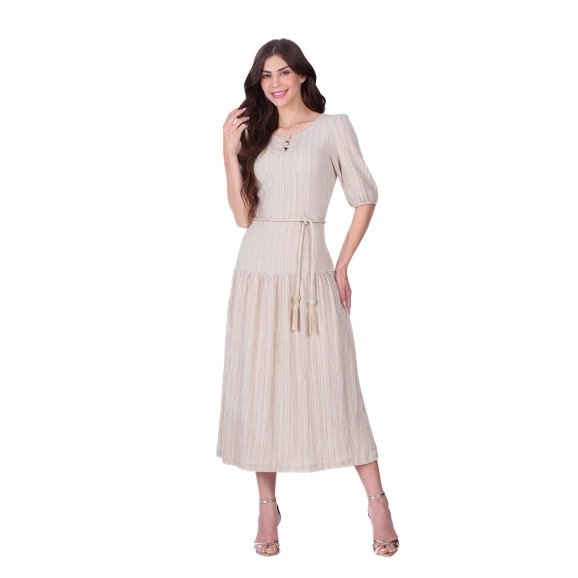 Vestido Thaisa Em Malha Texturizada Bege Hapuk