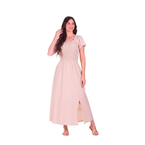 Vestido Thalita Em Malha Texturizada Listrada Mostarda Hapuk
