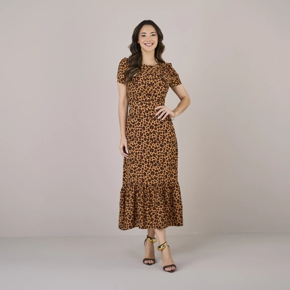 VESTIDO TICIANE CONFECCIONADO NO CREPE NEW SABIA. POSSUI GOLA REDONDA COM UM PEQUENO SUSPIRU COM BOTÃO ATRÁS, COM BOTÕES NÃO FUNCIONAIS NO BUSTO DETALHE BABADO, SUAS MANGAS CURTAS COM DETALHE FRANZIDO NOS OMBROS, POSSUI LASTEX NA CINTURA ATRÁS, MODELAGEM EVASÊ, COMPRIMENTO MIDI. TODO FORRADO .
