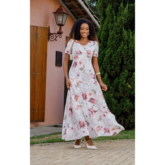 Vestido Raíssa Em Crepe Estampado Maria Amore