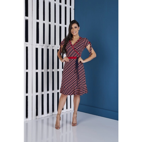 Detalhe: vestido confeccionado em malha, transpassado, possui amarração nas mangas, faixa embutida. Dress fresquinho, confortável, ideal para curtir o final de semana em família!