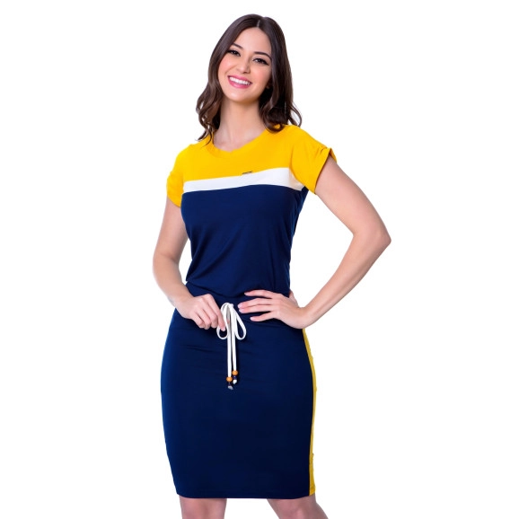 Vestido Tricolor Amarelo Hapuk confeccionado em malha e detalhe em cordão na cintura. Composição: 96% Viscose 4% Elastano Forro: 100% Poliester. Vestido lindo e confortável, você não pode ficar sem esse modelo no seu guarda-roupa!