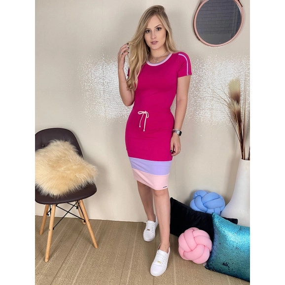 Vestido Tricolor Pink Joyaly, confeccionado em malha, possui detalhe em cordão na cintura. Composição: vestido : 94% viscose 6%Elastano Forro: 100%Poliester