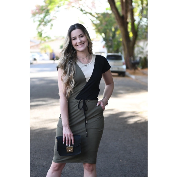 Vestido Tricolor Verde confeccionado em malha, possui bolsos laterais, amarração em cordão na cintura. Um vestido super confortável para a correria do dia a dia!
