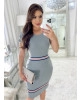Vestido Tubinho Andreza Em Malha Canela Cinza Com Detalhe Rosa Maria Amore.