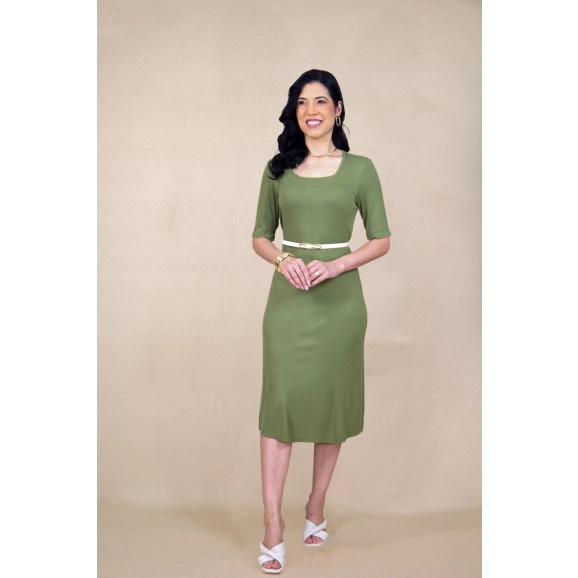 Vestido Tubinho de Malha Canelada Verde Hadaza