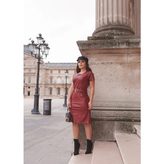 O vestido tubinho em couro joyaly possui fechamento em zíper atrás. A composição do tecido é 100%Viscose forro 100%poliester . Look maravilhoso e a cara da estação! Pode ser usado com scarpin e botas! Acompanha Cinto!