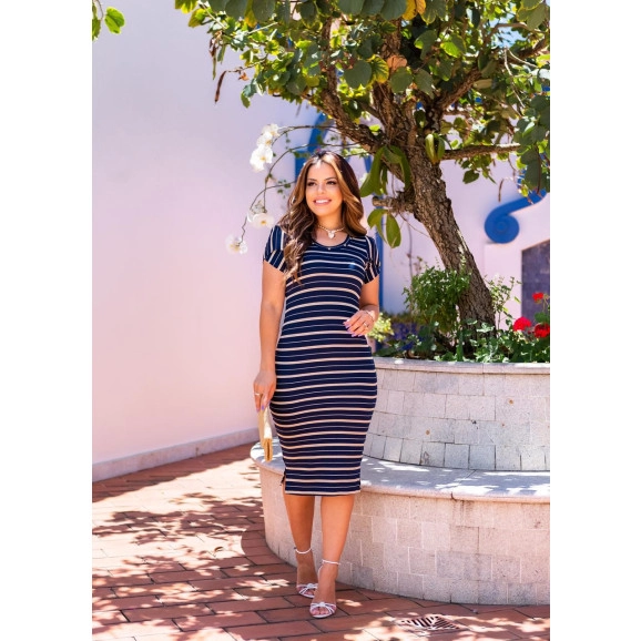 Vestido Tubinho Listrado Azul-Marinho Boutique k