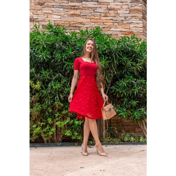 Detalhe: vestido evasê com sobreposição em tule/saia, fechamento em zíper atrás. Procurando um vestido para alguma ocasião em especial? Achou! Além de lindo é super confortável!