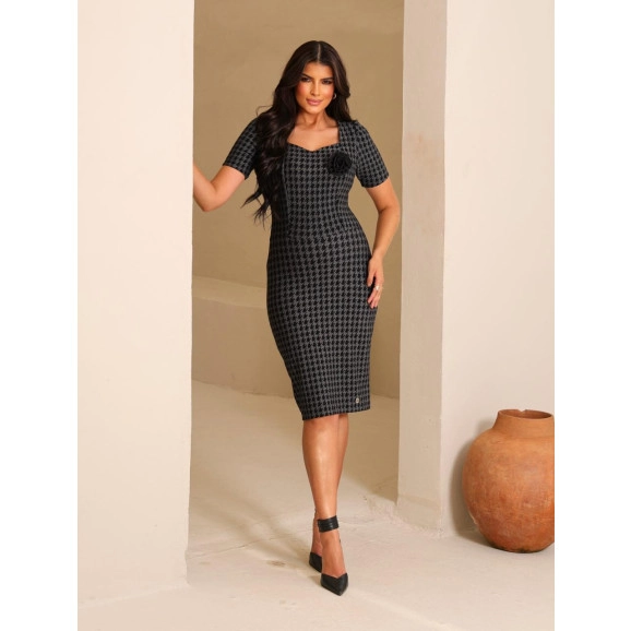 Vestido Úrsula Em Malha Premium Xadrez Maria Amore
