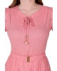 Vestido confeccionado em viscose, decote redondo com viés e ponteiras, detalhe em guipir, mangas curtas com elástico interno, elástico interno na cintura, bolsos funcionais, acompanha cinto do próprio tecido com elástico interno e possui forro.