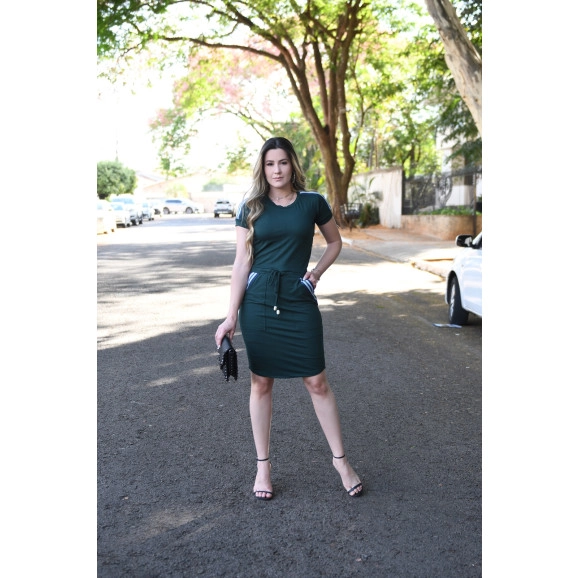 Vestido Verde confeccionado em malha, possui bolsos laterais, amarração em cordão na cintura. Um vestido super confortável para a correria do dia a dia!