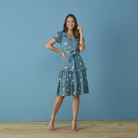 Vestido Tatá Martello, confeccionado em Viscose, forrado, manga curta, estampa de poá, saia com babados. Acompanha faixa de mesmo tecido.Composição: 100% Viscose. Os melhores vestidos e mais confortaveis você encontra aqui em nosso site!