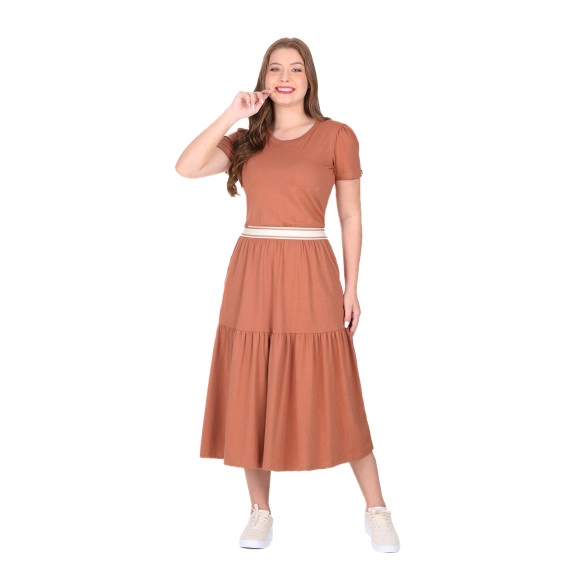 Vestido Zelita Em Malha De Algodão Marrom Hapuk